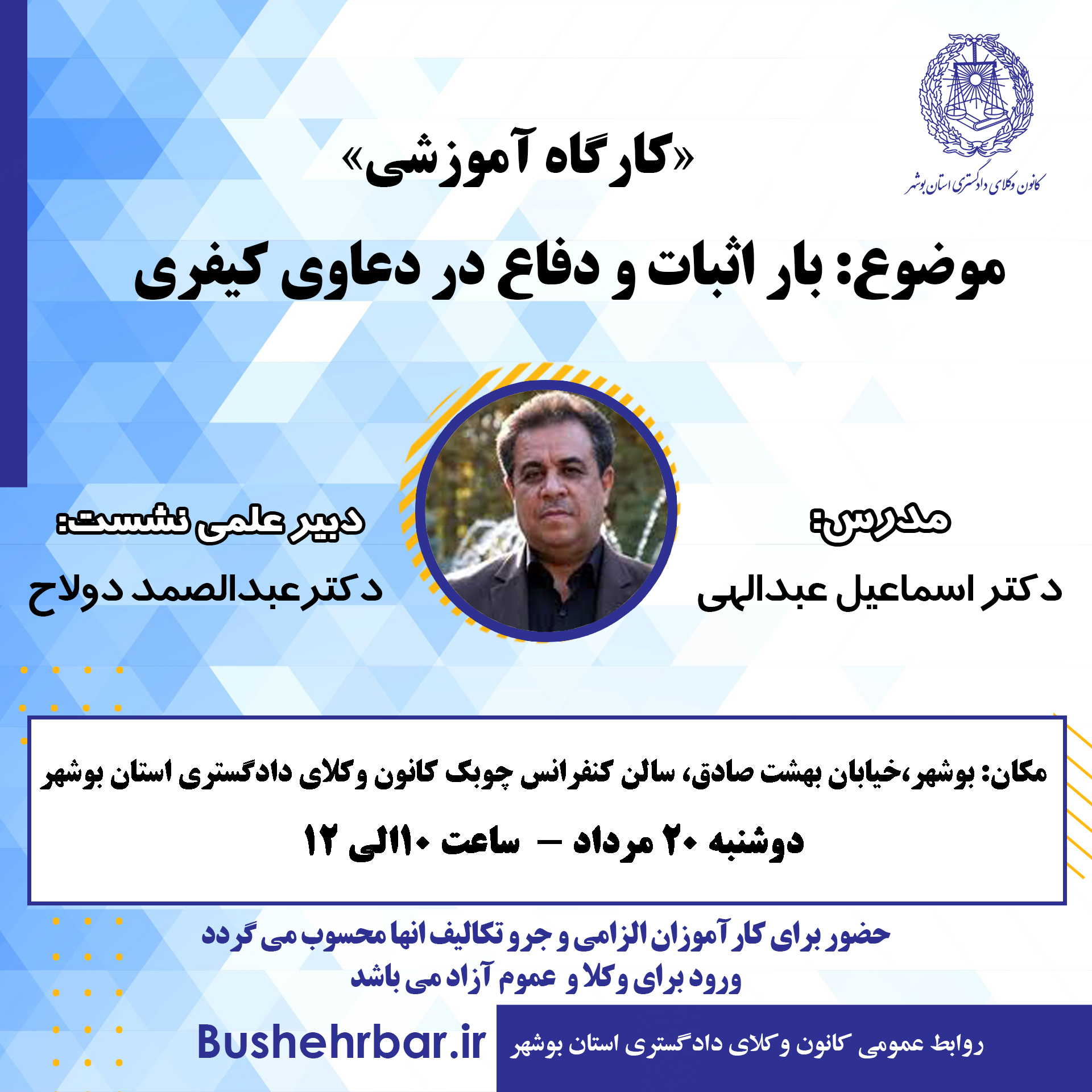 «کارگاه آموزشی» موضوع: بار اثبات و دفاع در دعاوی کیفری
