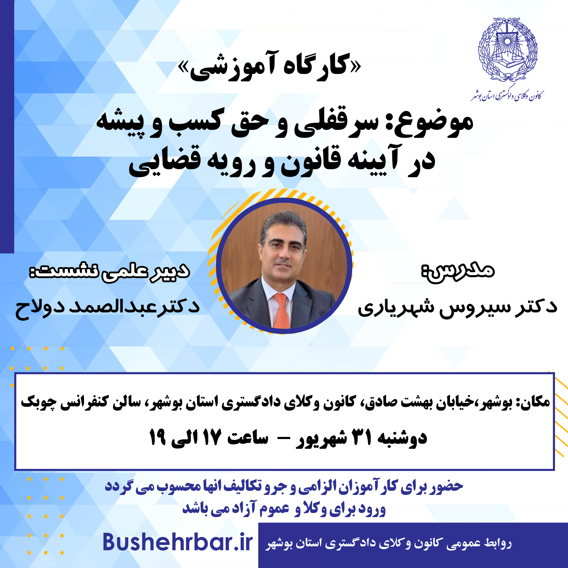 «کارگاه آموزشی» موضوع: سرقفلی و حق کسب و پیشه در آیینه قانون و رویه قضایی