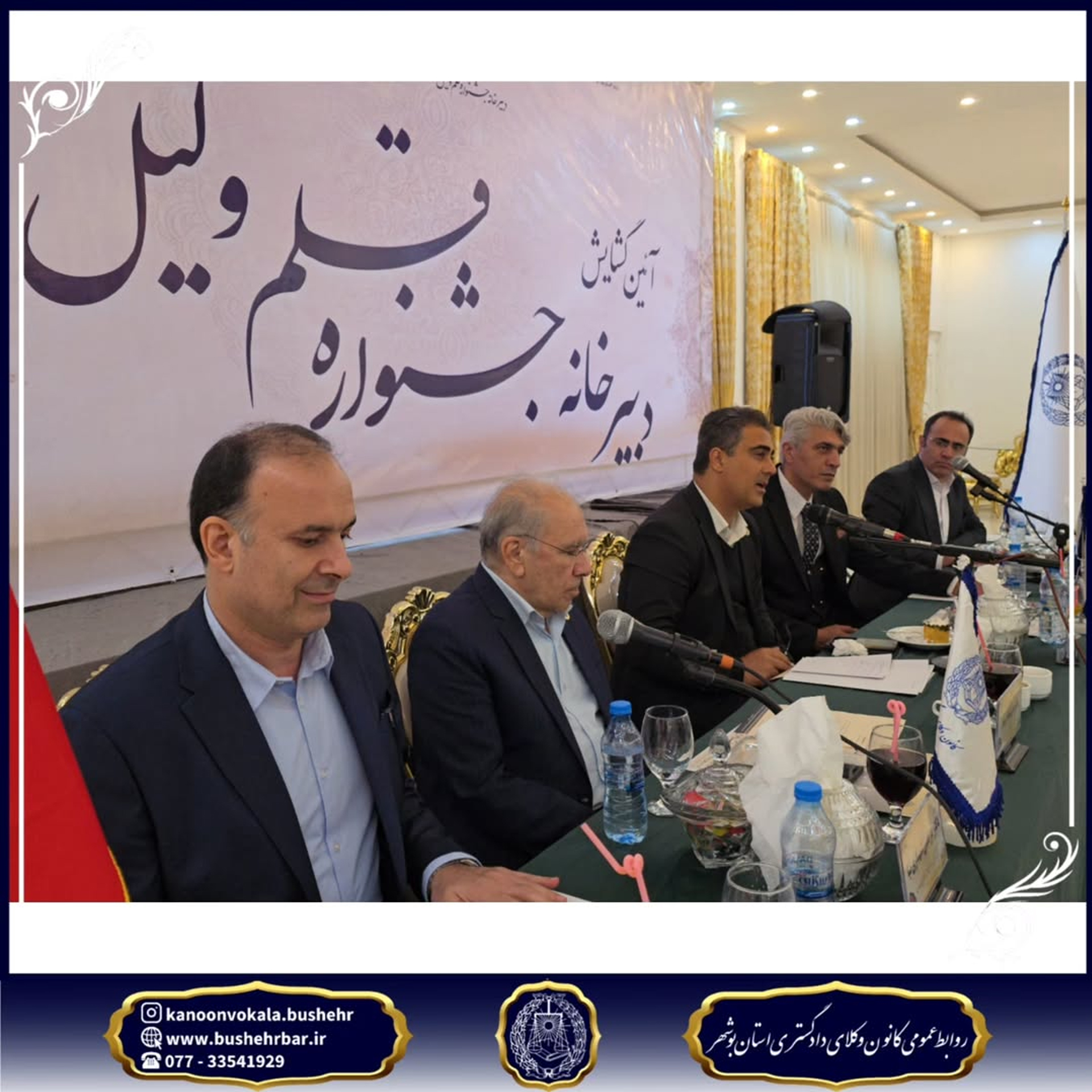 در مورخ ششم دی ماه ۱۴۰۳ آئین گشايش دبیرخانه جشنواره قلم وکیل در محل دائمی آن در کانون وکلای دادگستری استان بوشهر برگزار گردید.