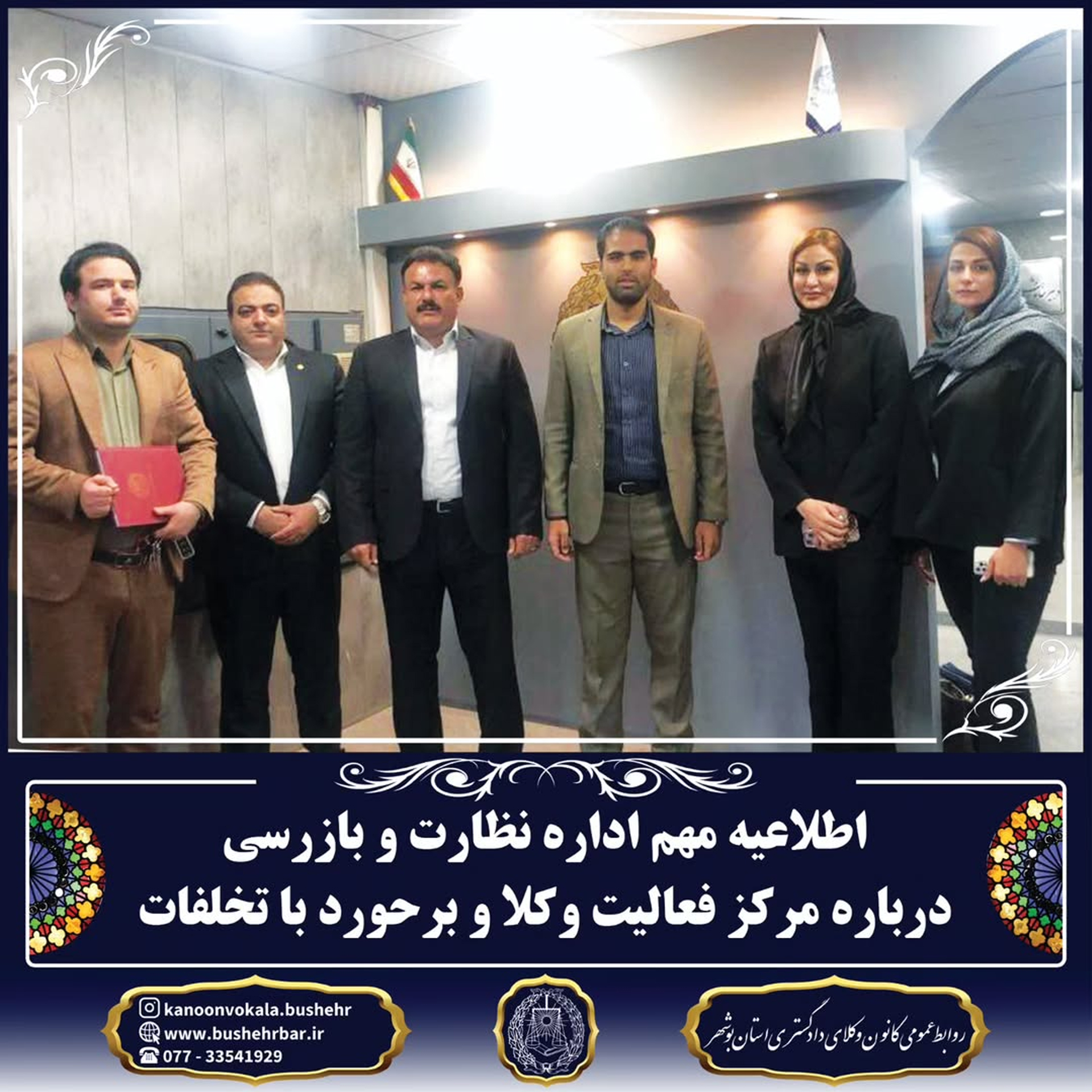 اطلاعیه اداره نظارت و بازرسی کانون وکلای دادگستری استان بوشهر
