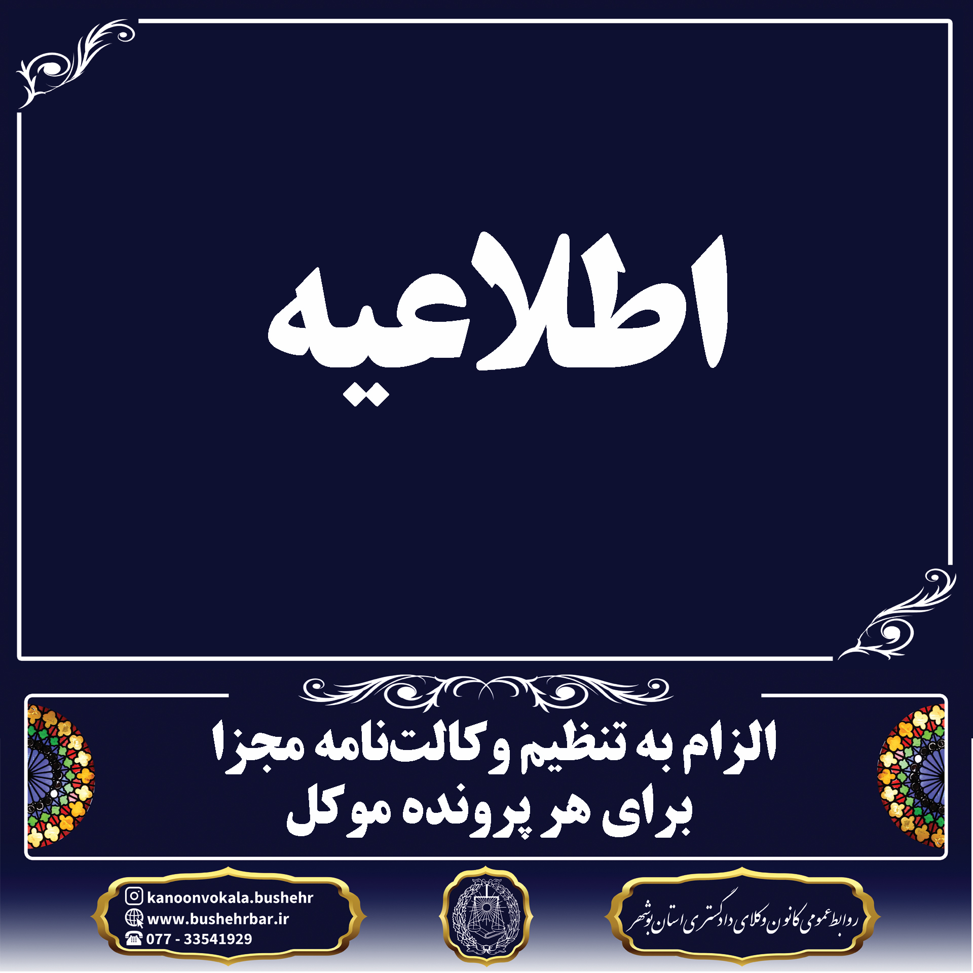 اطلاعیه الزام به تنظیم وکالتنامه مجزا برای هر پرونده موکل