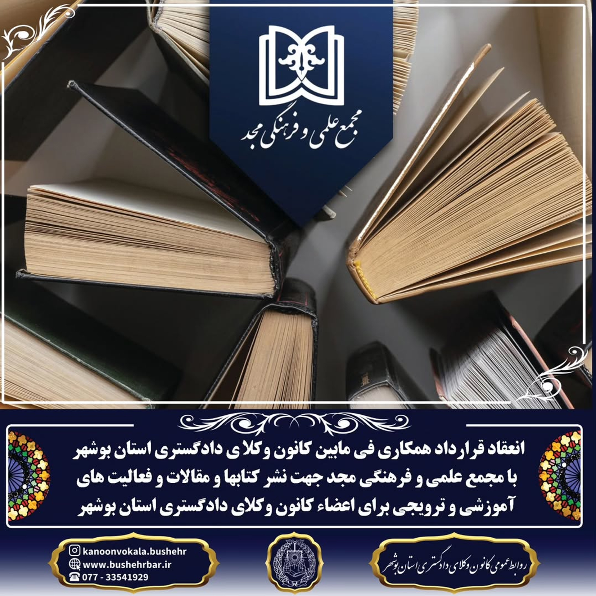 انعقاد همکاری بین کانون وکلای دادگستری استان بوشهر با مجمع علمی و فرهنگی مجد