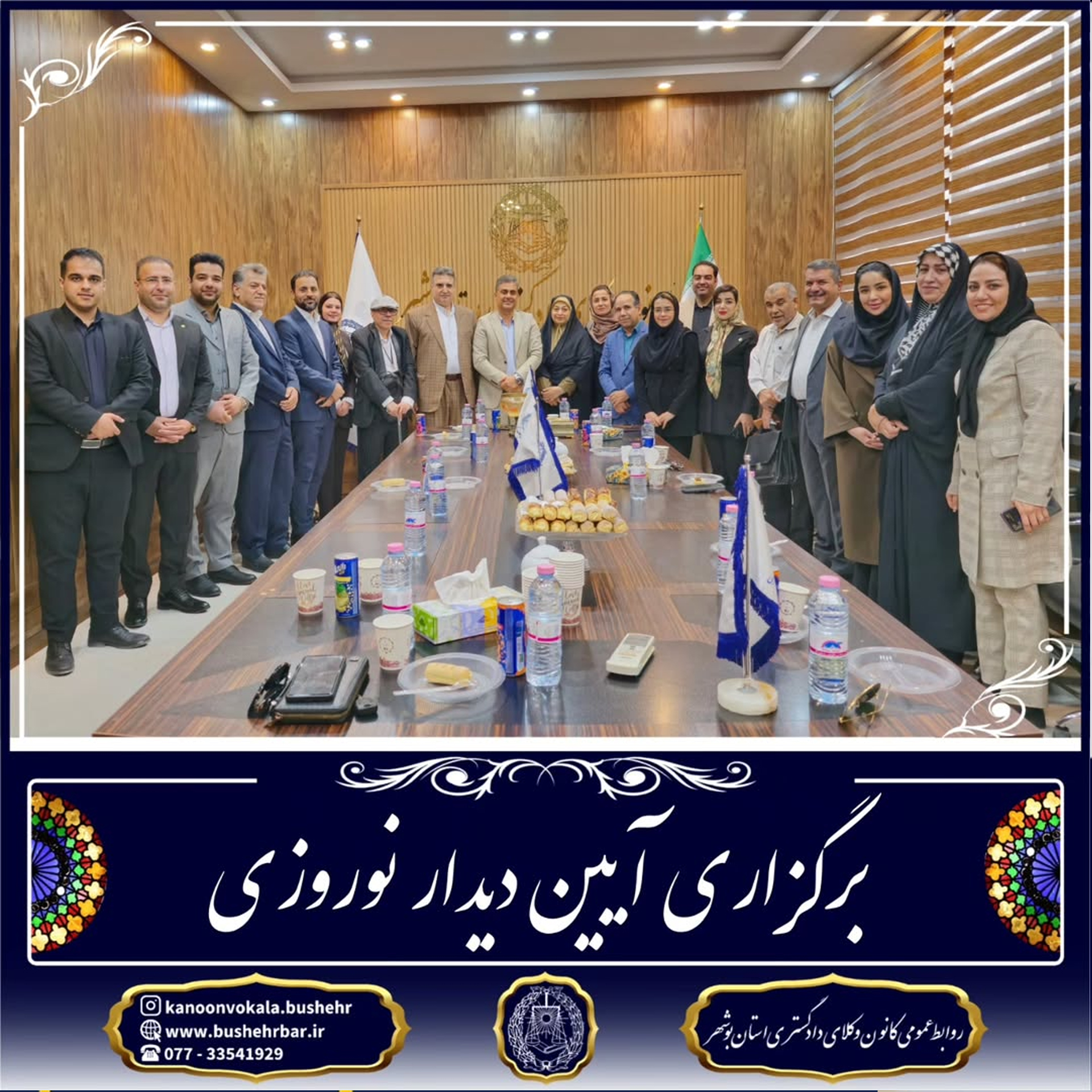 در تاریخ بیست و چهارم فروردین ماه سال جدید، نشست صمیمانهای تحت عنوان آیین بازدید نوروزی با حضور جمعی از وکلای محترم استان بوشهر در محل کانون وکلای دادگستری برگزار شد.