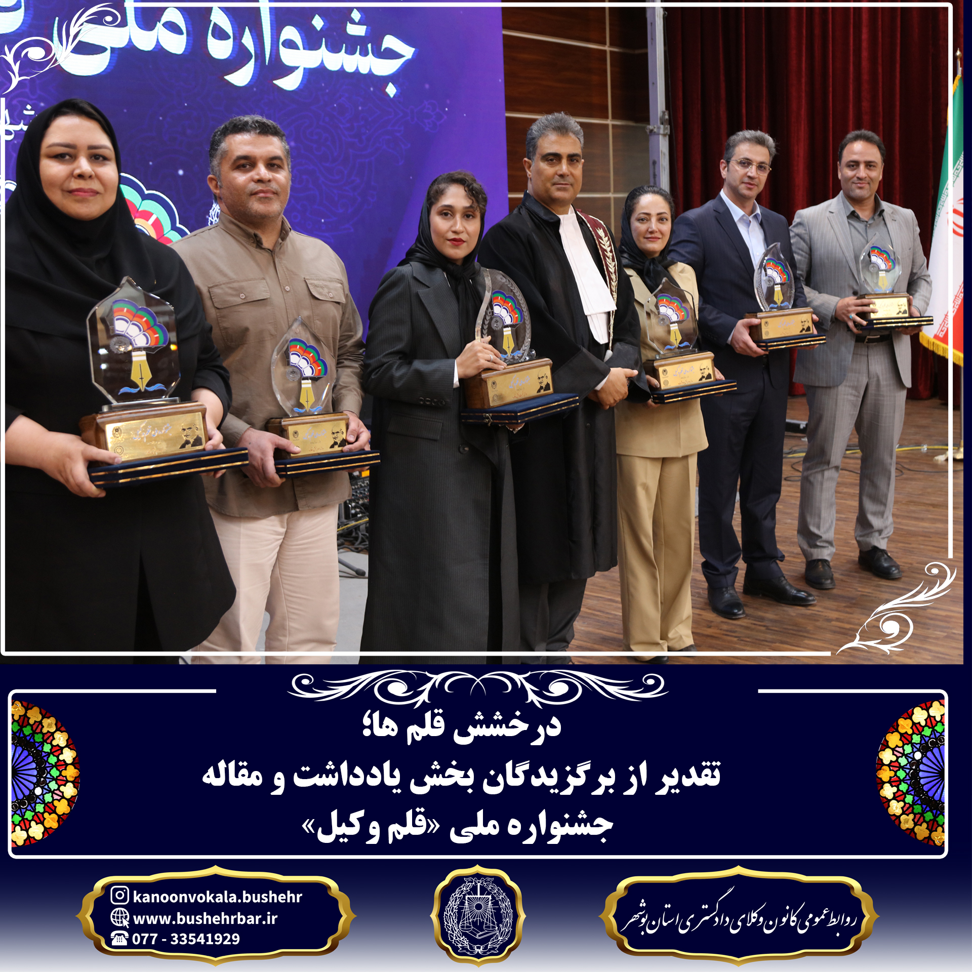 با افتخار آیین اختتامیه دومین جشنواره ملی «قلم وکیل» در بوشهر برگزار شد