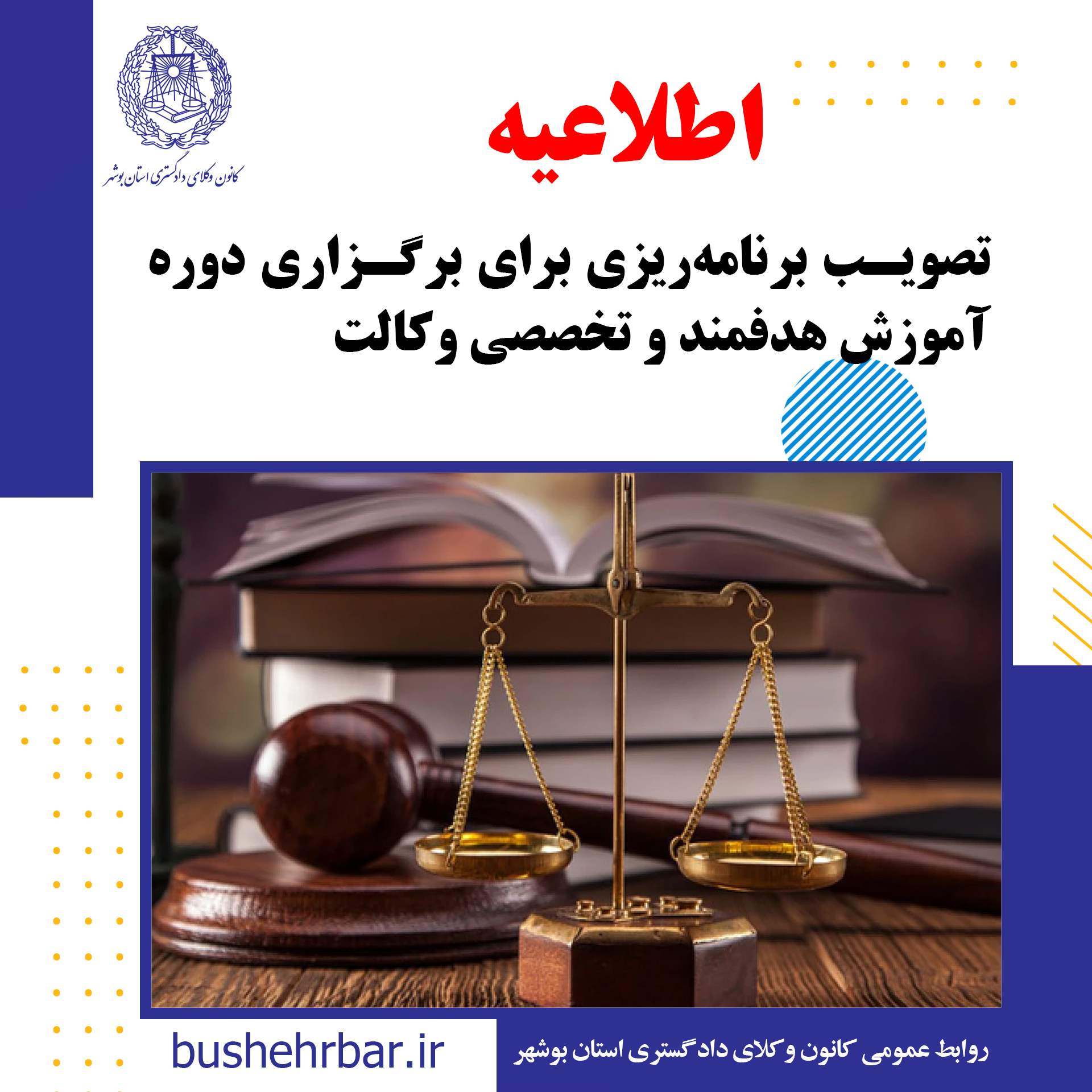 تصویب برنامه ریزی برای برگزاری دوره آموزش هدفمند و تخصصی وکالت
