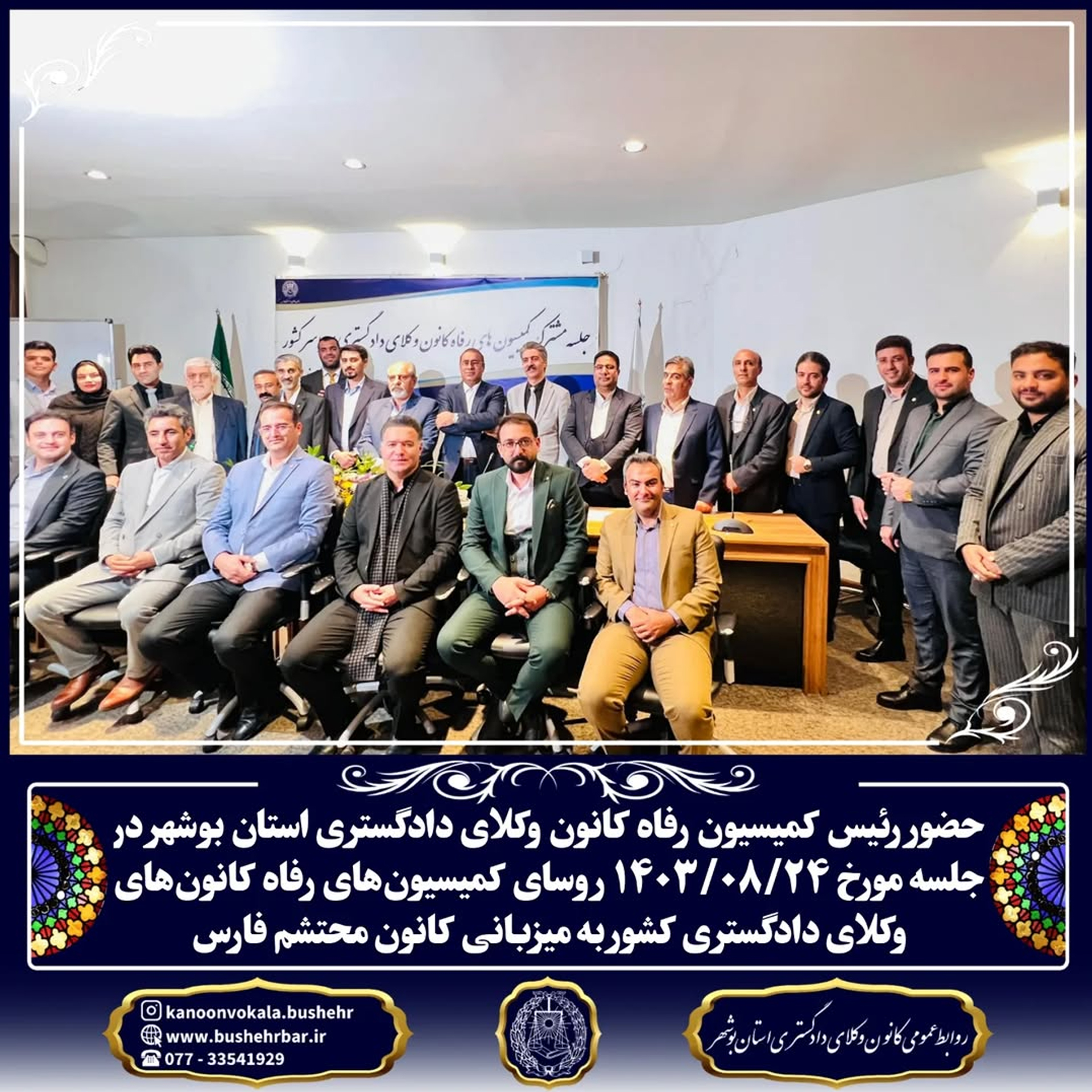در مورخ بیست و چهارم آبان ماه ۱۴۰۳ جلسه مشترک رؤسای کمیسیونهای رفاه کانون های وکلای دادگستری ایران در شیراز برگزار شد.