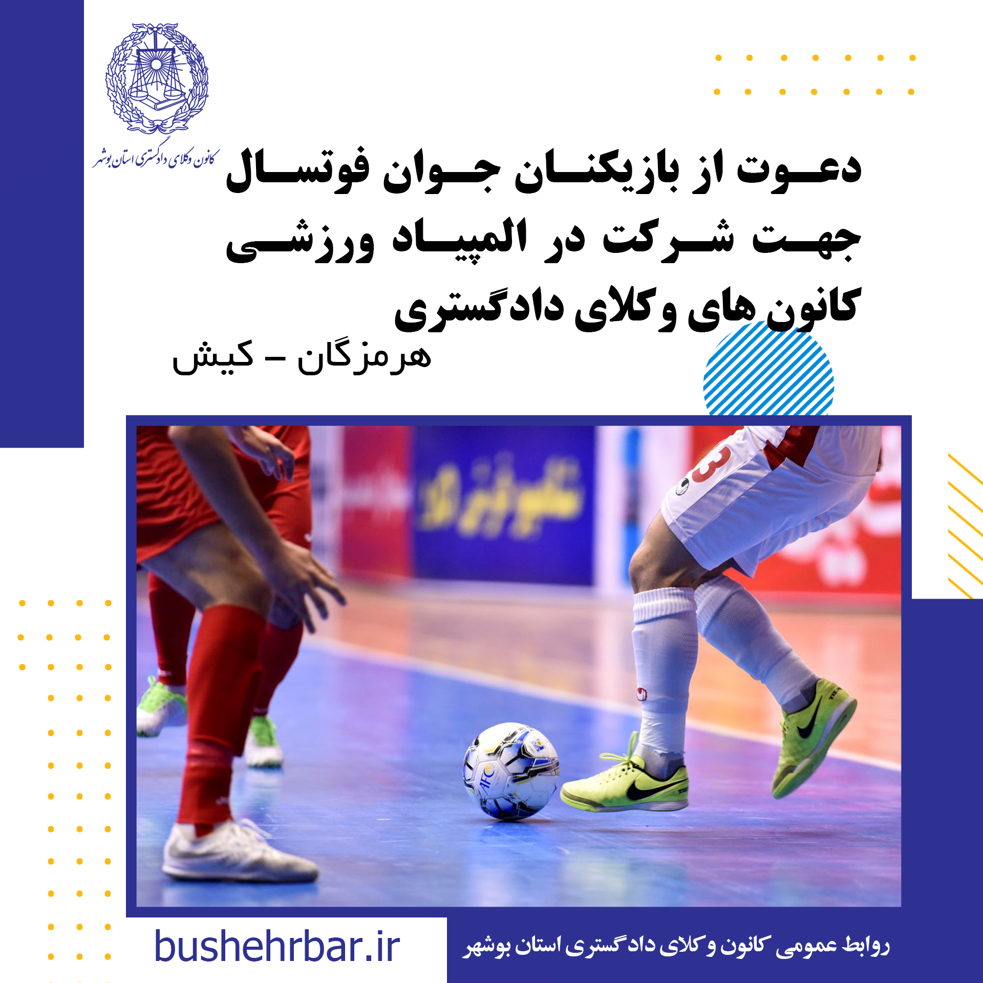 دعوت از بازیکنان جوان فوتسال جهت شرکت در المپیاد ورزشی کانون های وکلای دادگستری (هرمزگان - کیش)