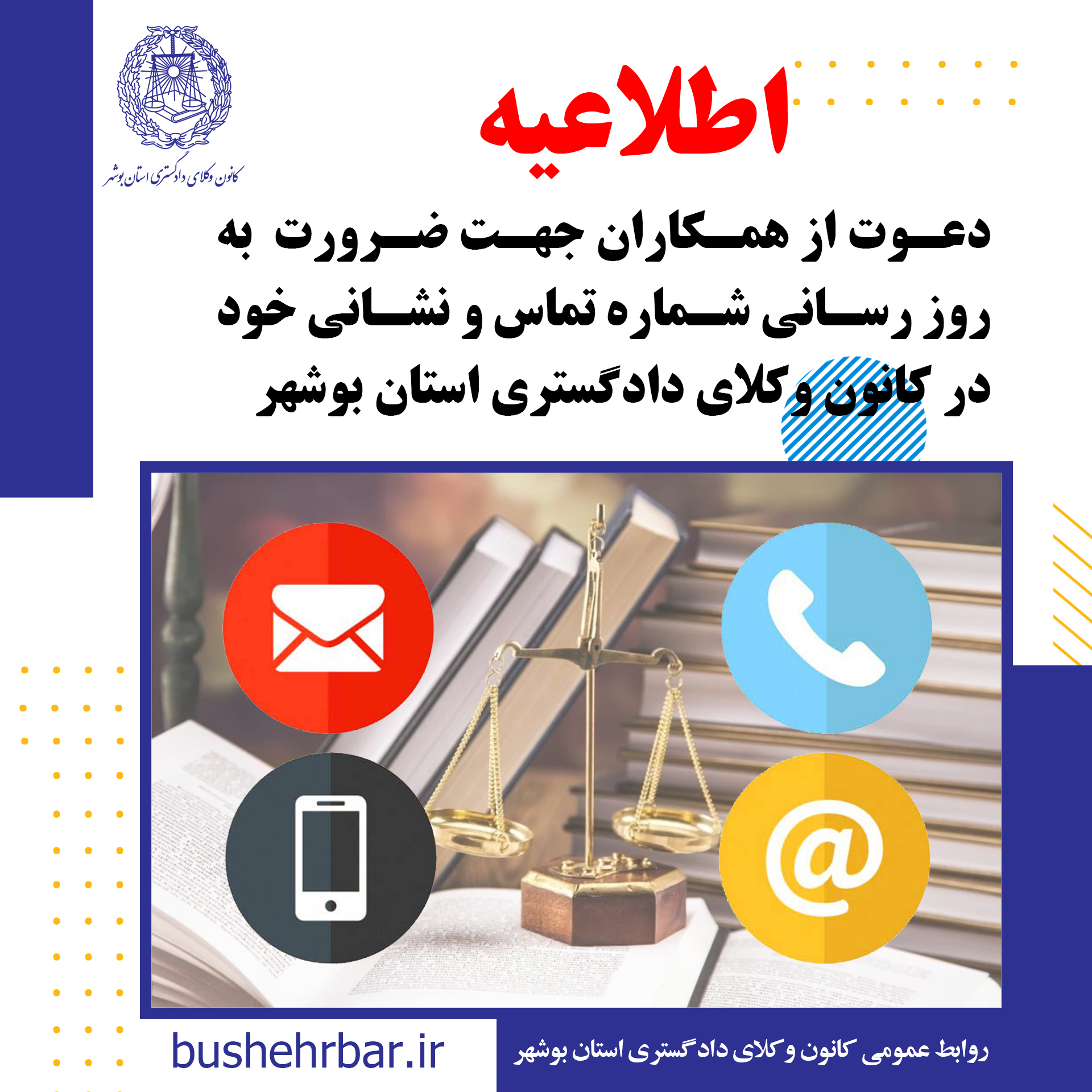 دعوت از همکاران جهت ضرورت به روز رسانی شماره تماس و نشانی خود در کانون وکلای دادگستری استان بوشهر