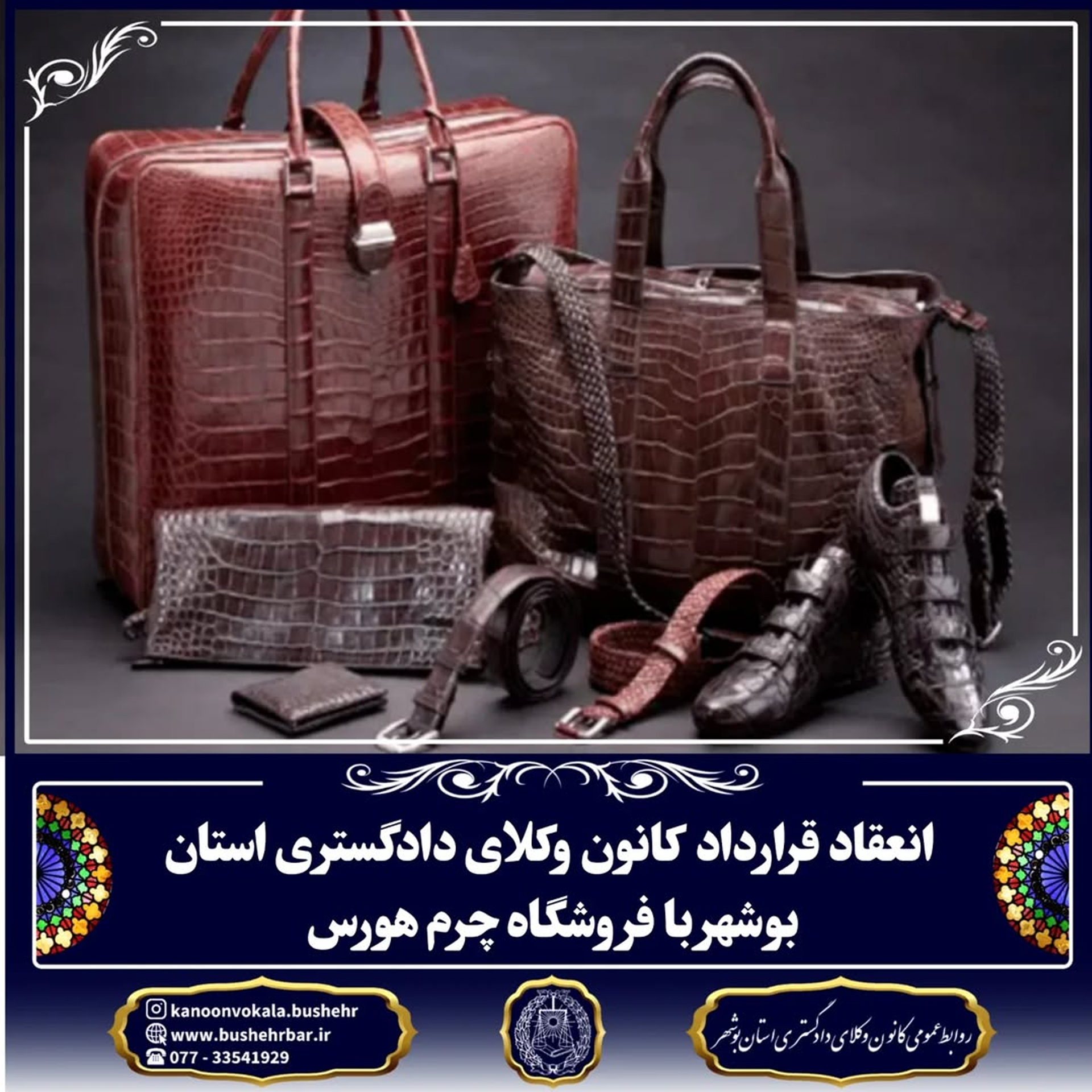 به اطلاع همکاران ارجمند میرساند:با توجه به انعقاد قرارداد فی مابین کمیسیون تعاون و رفاه کانون وکلای دادگستری استان بوشهر با فروشگاه چرم هورس مقرر گردید طرف دوم قرارداد: