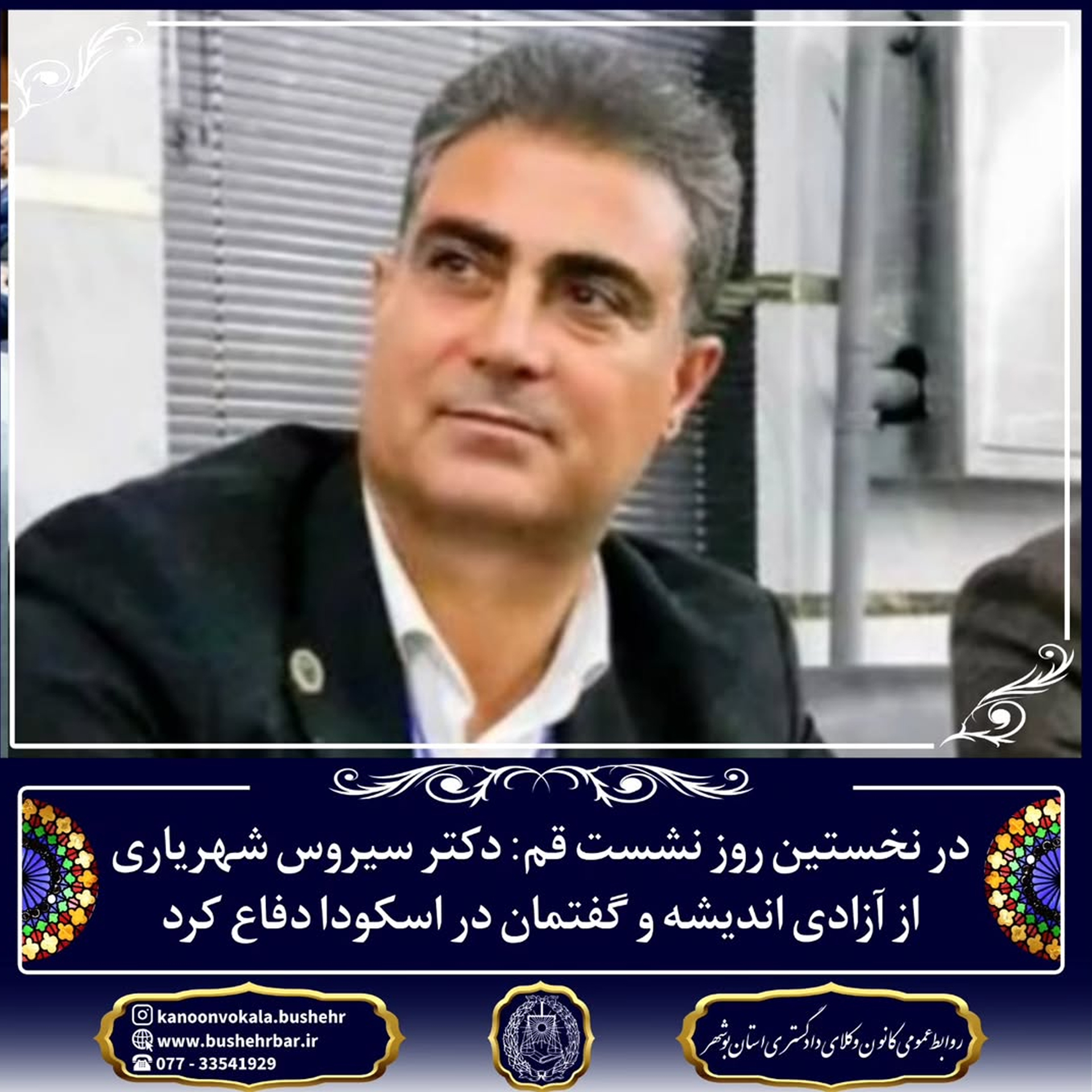 در پاسخ به این اظهارات، دکتر شهریاری، رئیس محترم کانون وکلای دادگستری بوشهر، چنین بیان داشتند: