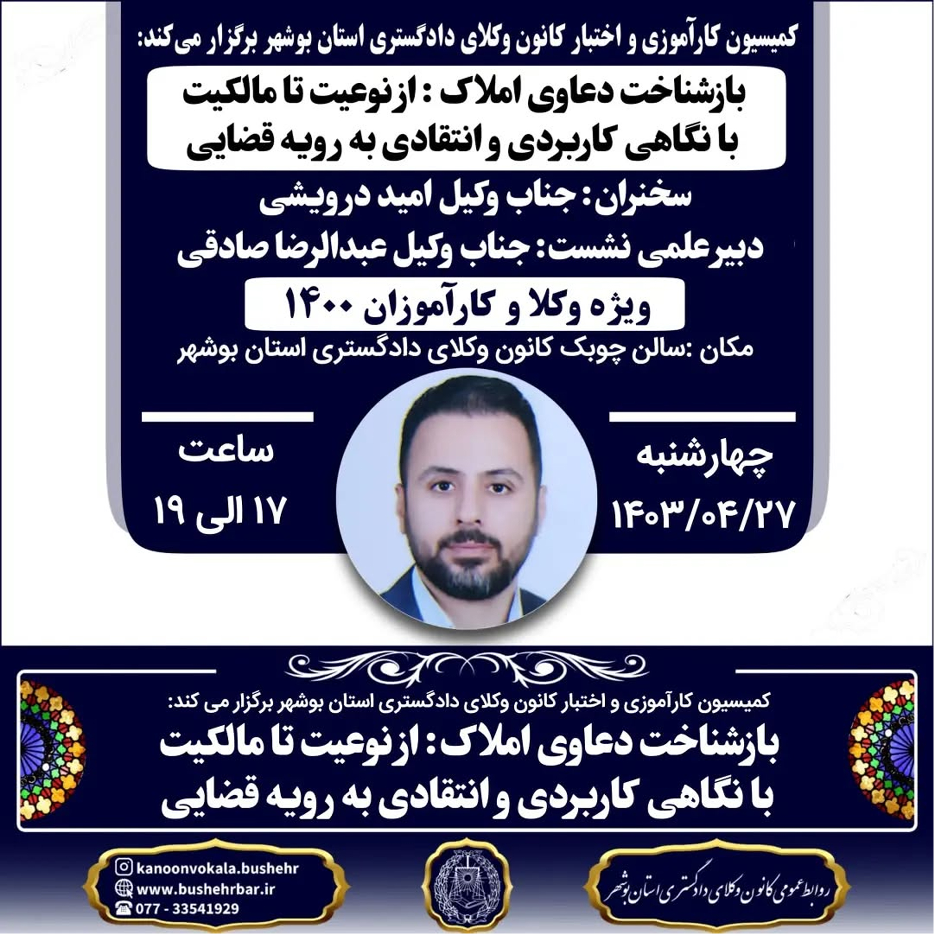 کارگاه آموزشی باز شناخت دعاوی املاک : از نوعیت تا مالکیت با نگاهی کاربردی و انتقادی به رویه قضایی