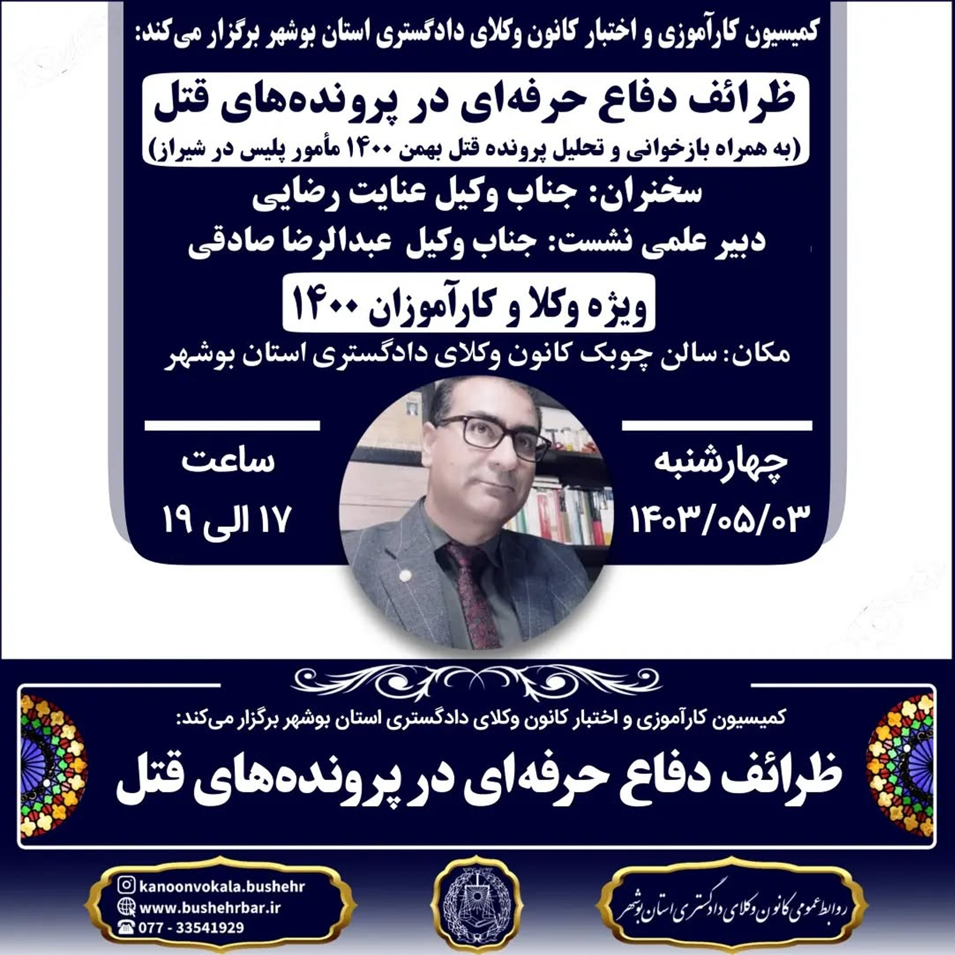 کارگاه آموزشی ظرائف دفاع حرفه ای در پرونده های قتل