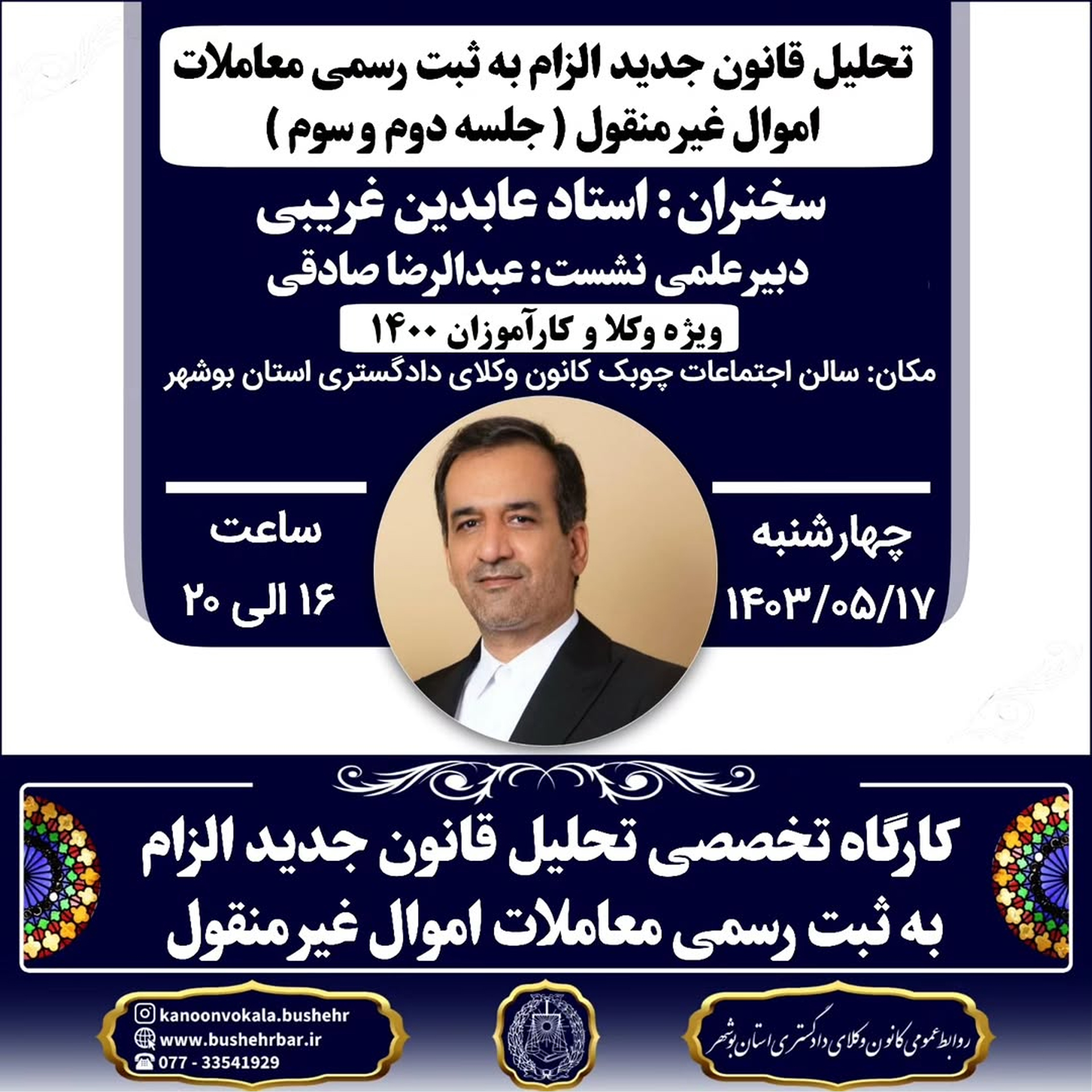 برگزاری کارگاه تخصصی تحلیل قانون جدید الزام به ثبت رسمی معاملات اموال غیر منقول