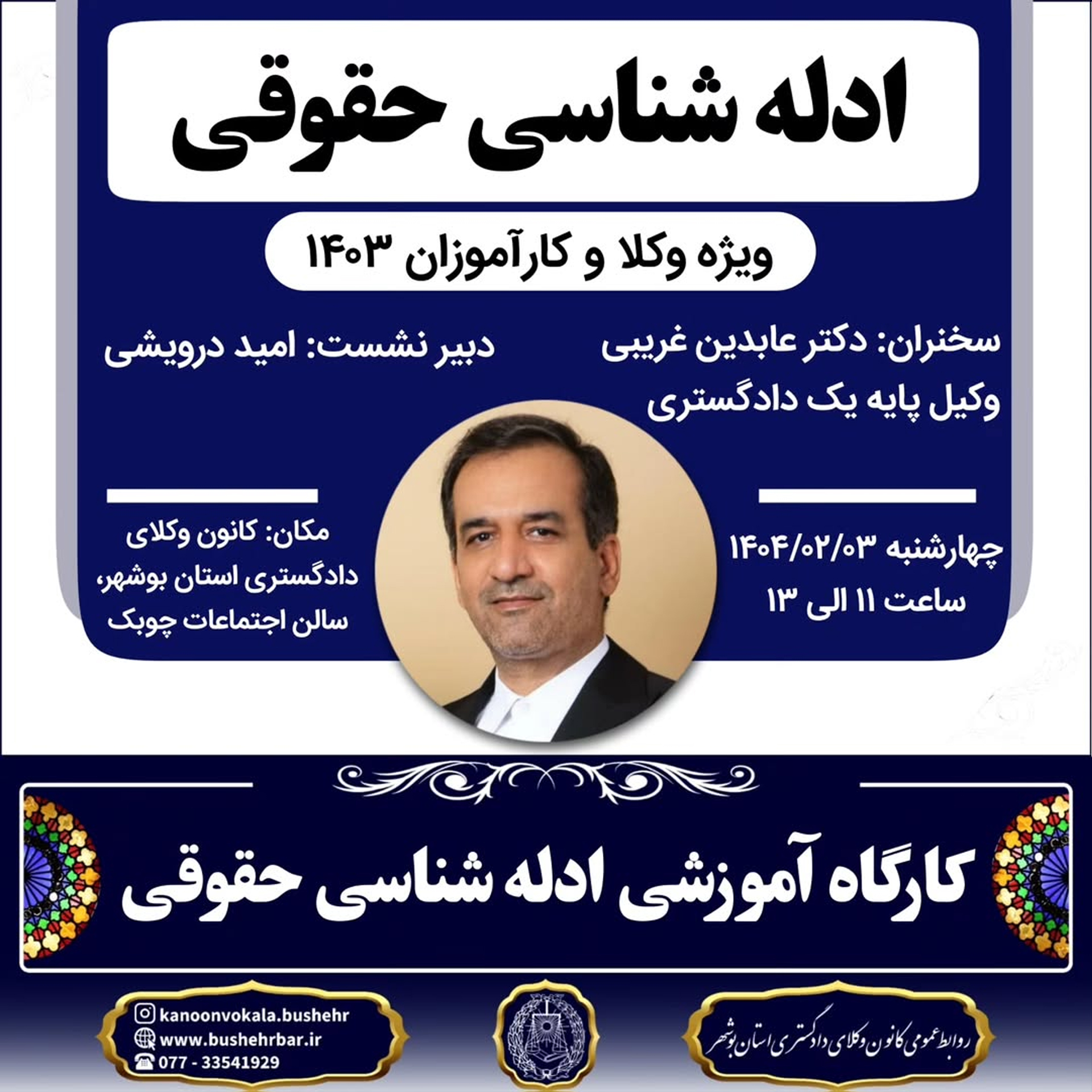 مکان:کانون وکلای دادگستری استان بوشهر ، سالن اجتماعات چوبک