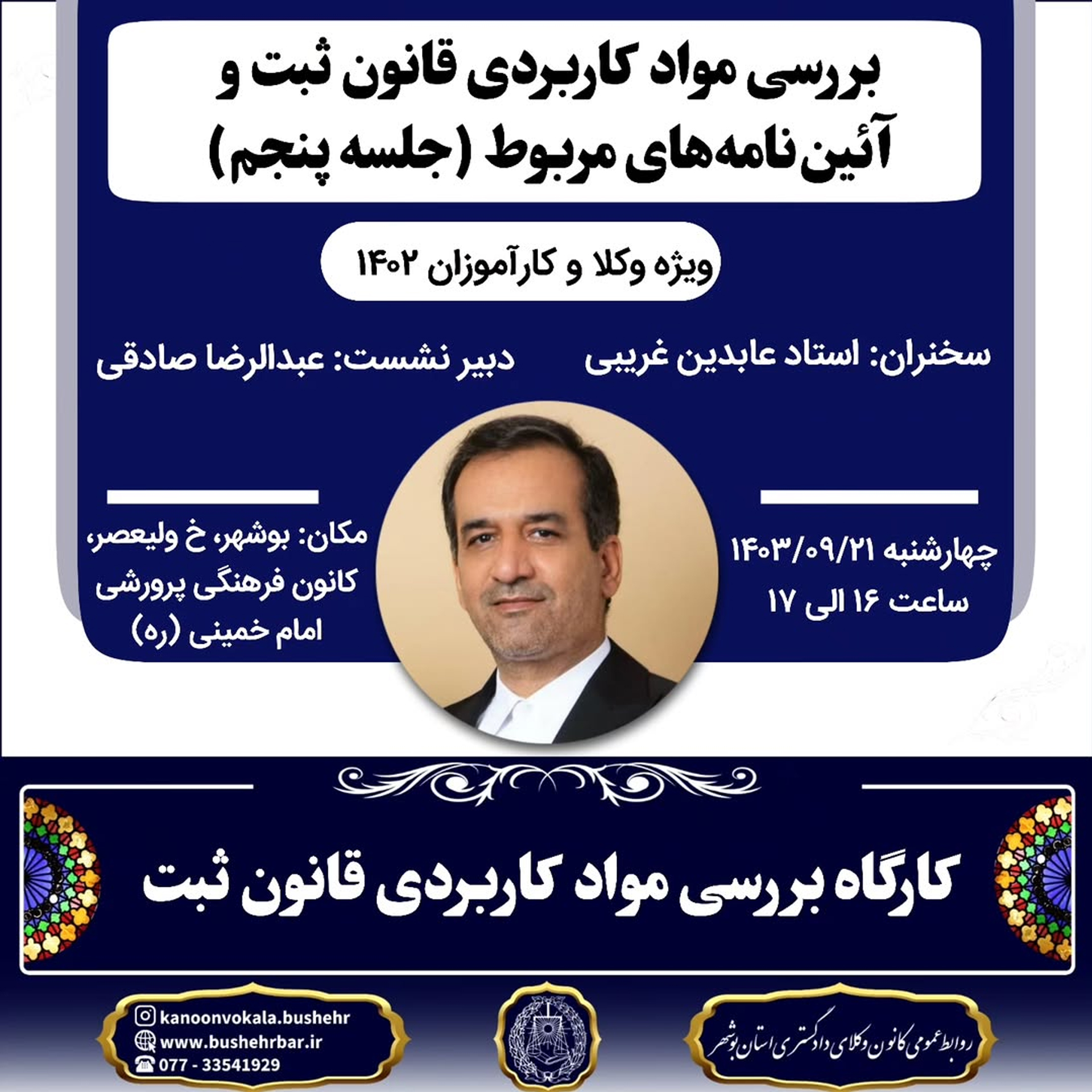 کارگاه آموزشی بررسی مواد کاربردی قانون ثبت و آئین نامه های مربوط (جلسه پنجم)