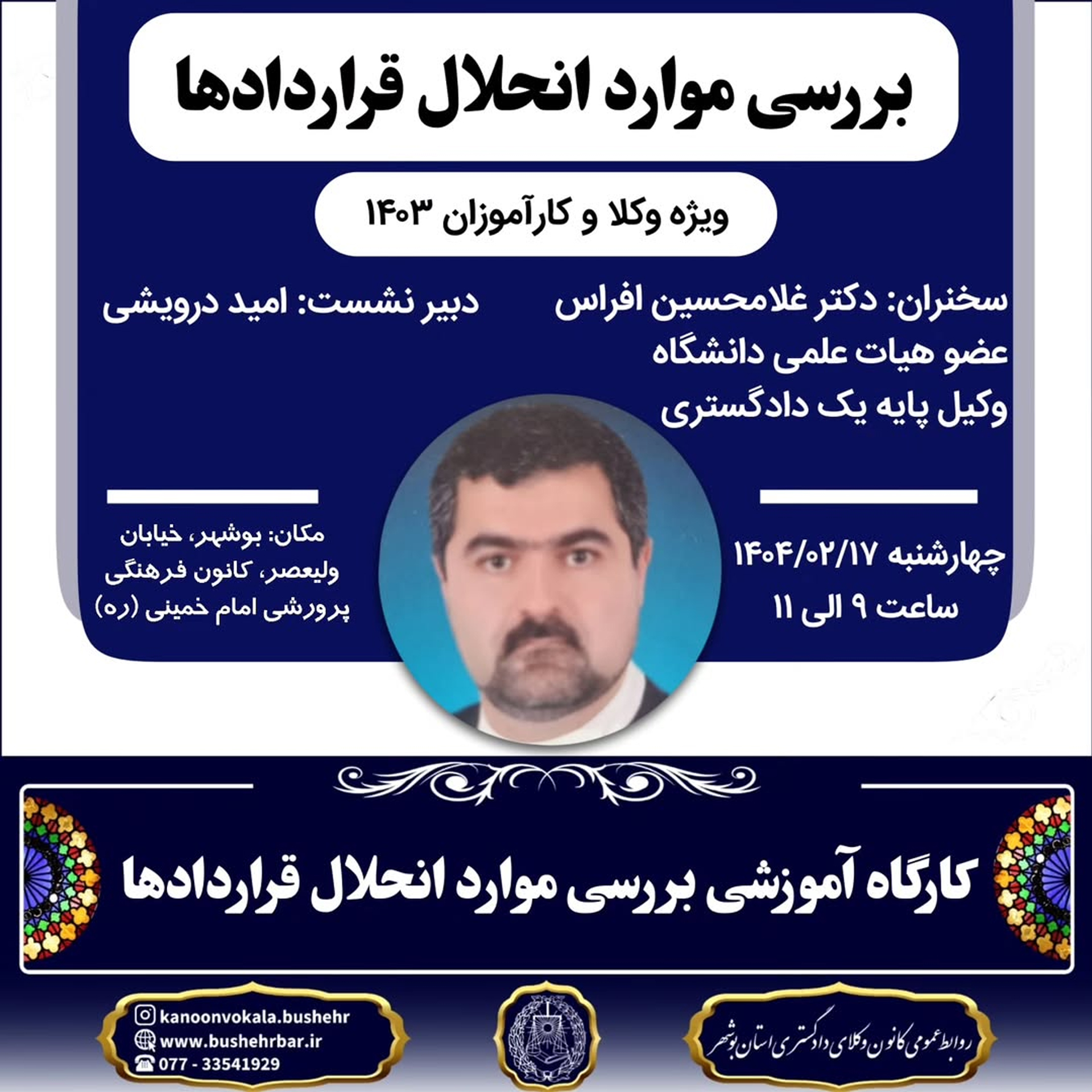 کارگاه آموزشی بررسی موارد انحلال قراردادها