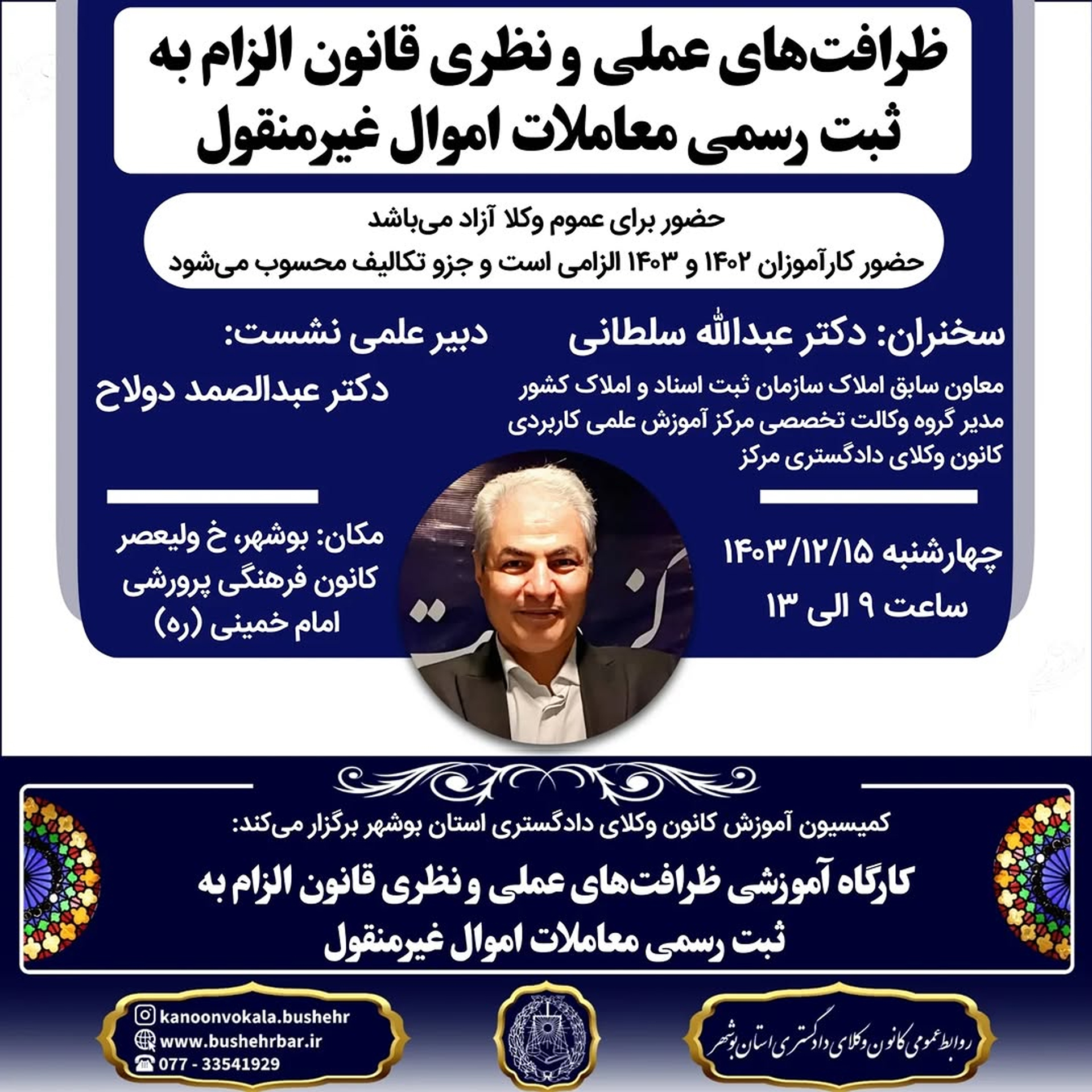 کارگاه آموزشی ظرافتهای عملی و نظری قانون الزام به ثبت رسمی معاملات اموال غیرمنقول