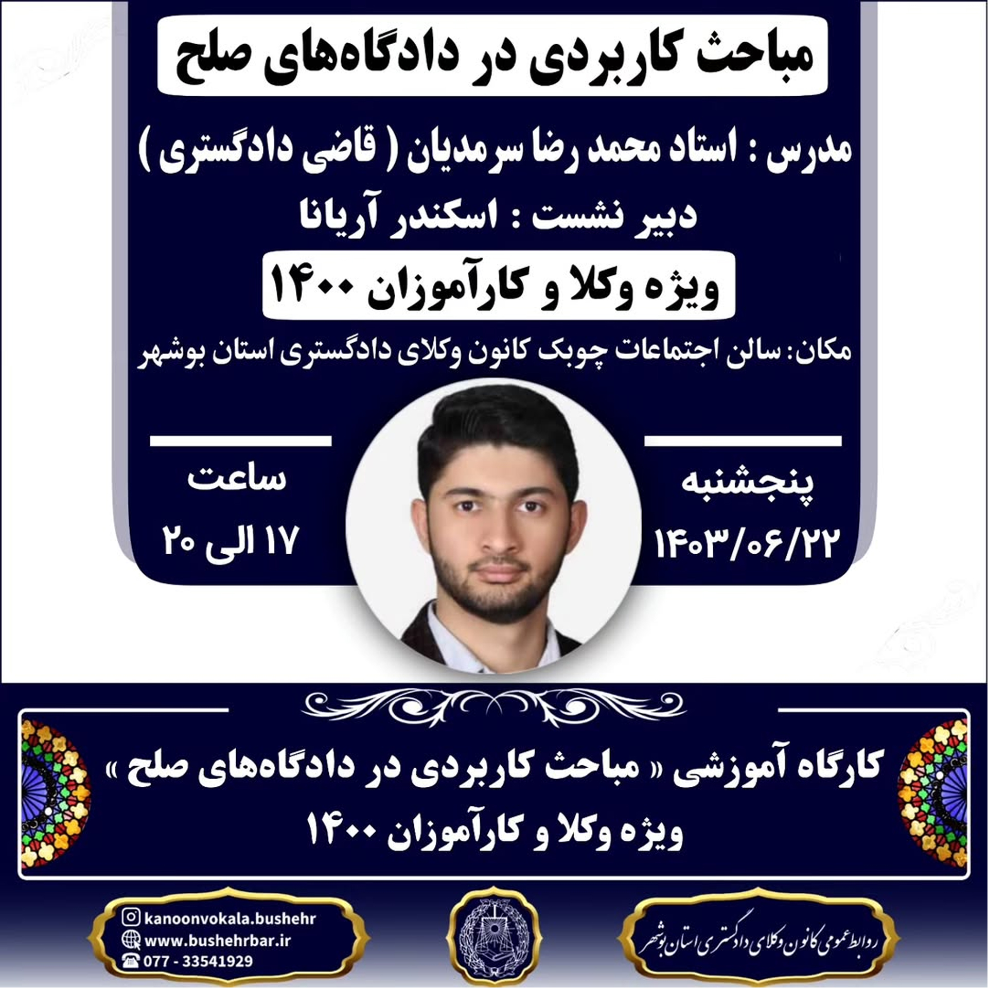 مکان: سالن اجتماعات چوبک کانون وکلای دادگستری استان بوشهر
