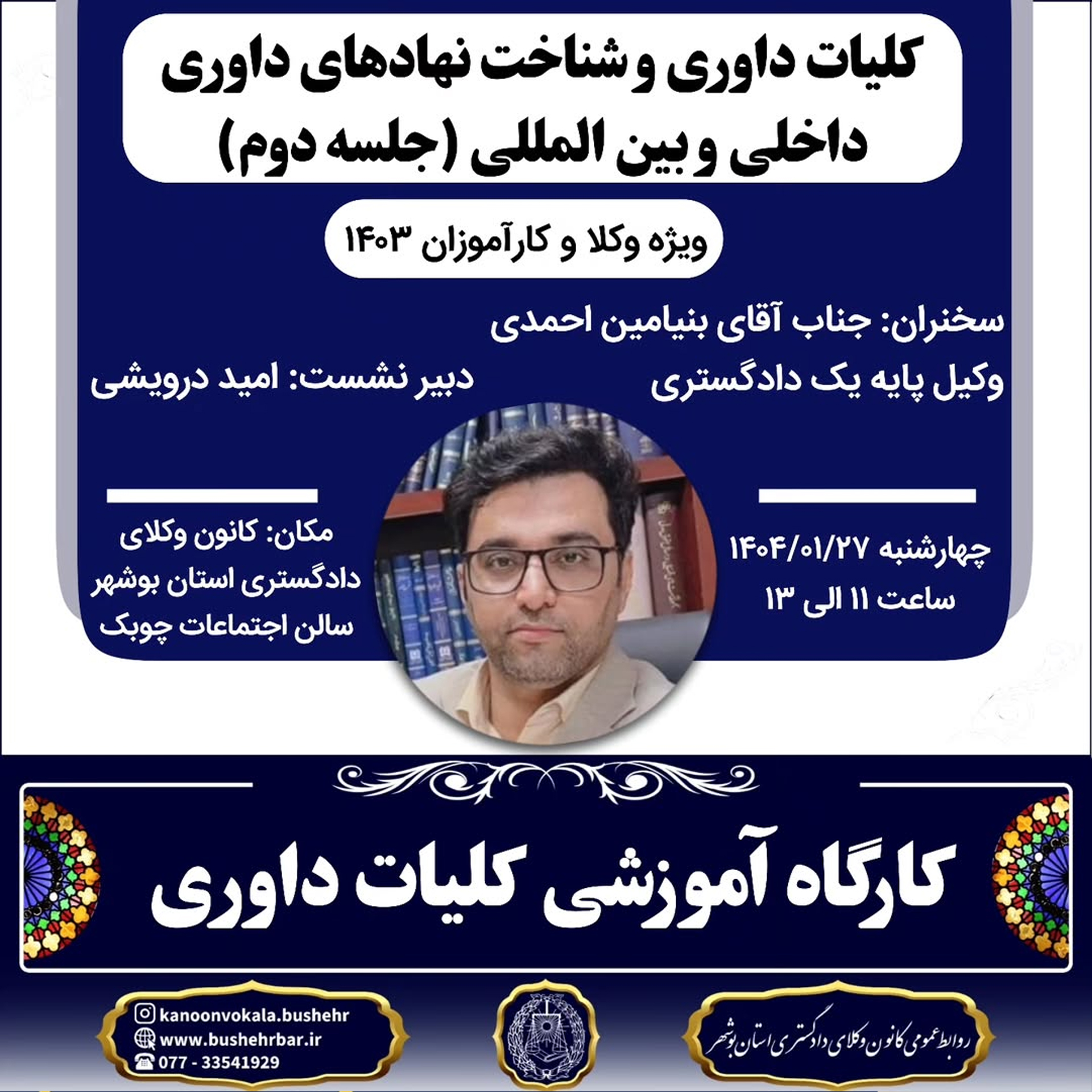 کارگاه آموزشی کلیات داوری و شناخت نهادهای داوری داخلی و بین المللی (جلسه دوم)