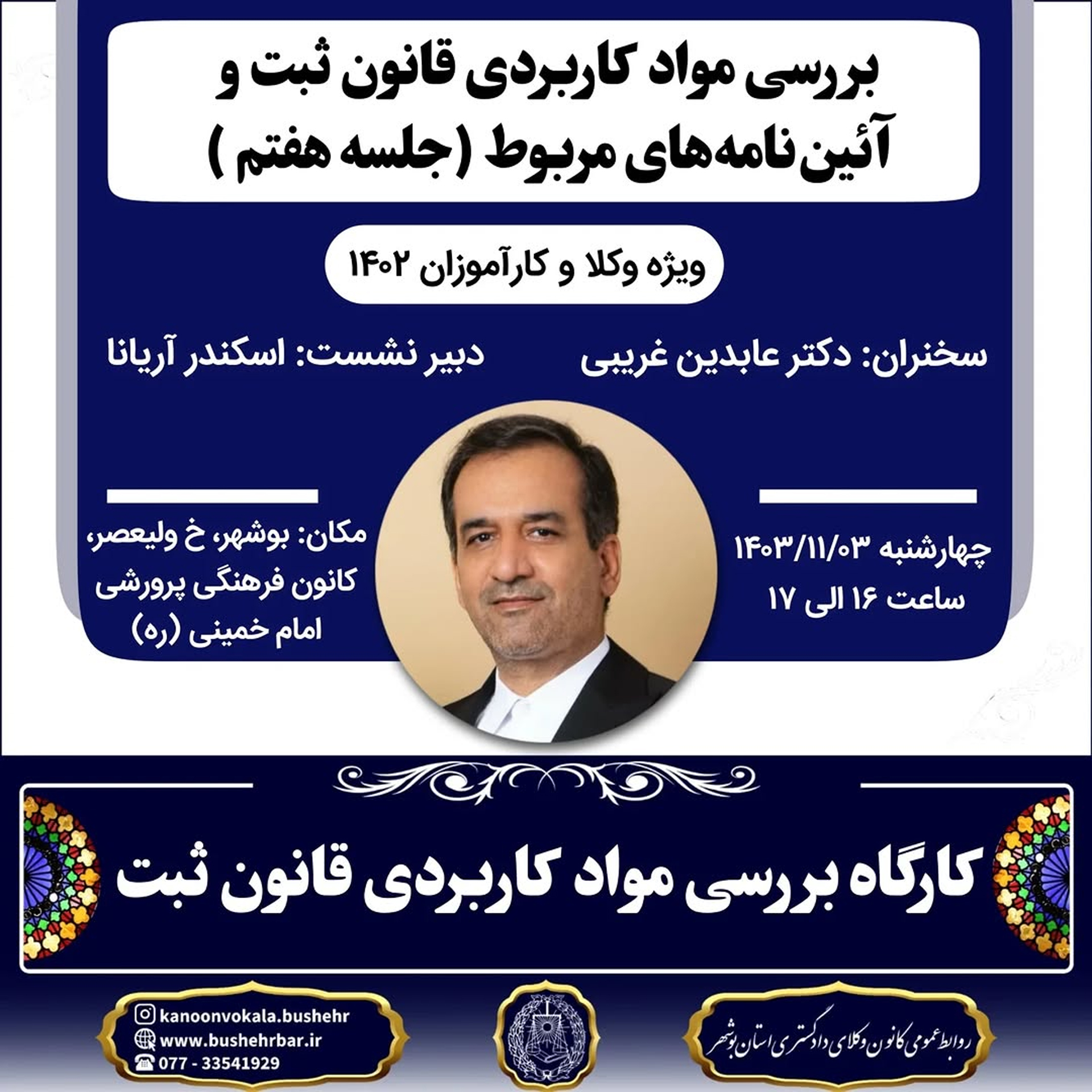کارگاه بررسی مواد کاربردی قانون ثبت و آئیننامه های مربوط ( جلسه هفتم )