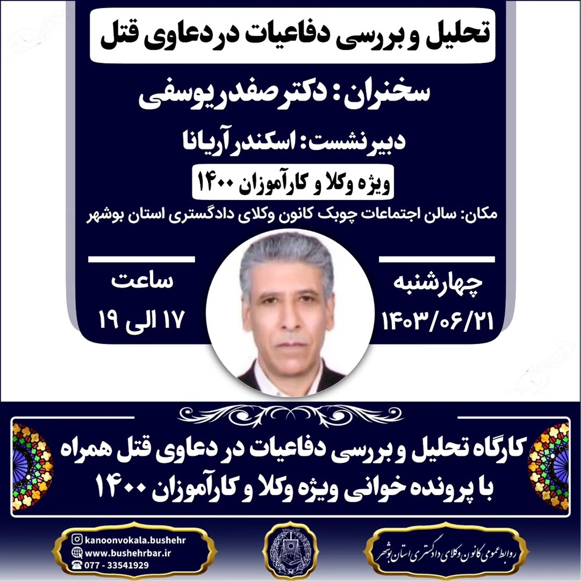 مکان: سالن اجتماعات چوبک کانون وکلای دادگستری استان بوشهر