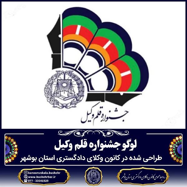 لوگوی «جشنواره قلم وکیل» که بر اساس ایده اعضاء هیات مدیره کانون وکلای دادگستری استان بوشهر طراحی شده است، در برگیرنده مفاهیم زیر است ؛ 🔹استفاده از قلم به عنوان نماد اندیشه و نویسندگی، 🔹استفاده از لگوی کامل کانون وکلای دادگستری که در آن از کتاب، خورشید، میزان و شاخه گندم و زیتون به عنوان نماد دانش عدالت، قانون، تلاش و صلح ورزی است