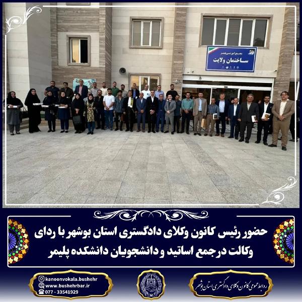 حضور رئیس کانون وکلای دادگستری استان بوشهر با ردای وکالت در جمع اساتید و دانشجویان دانشکده پلیمر