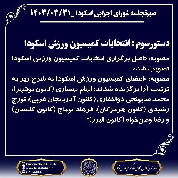دستور سوم : انتخابات کمیسیون ورزش اسکودا