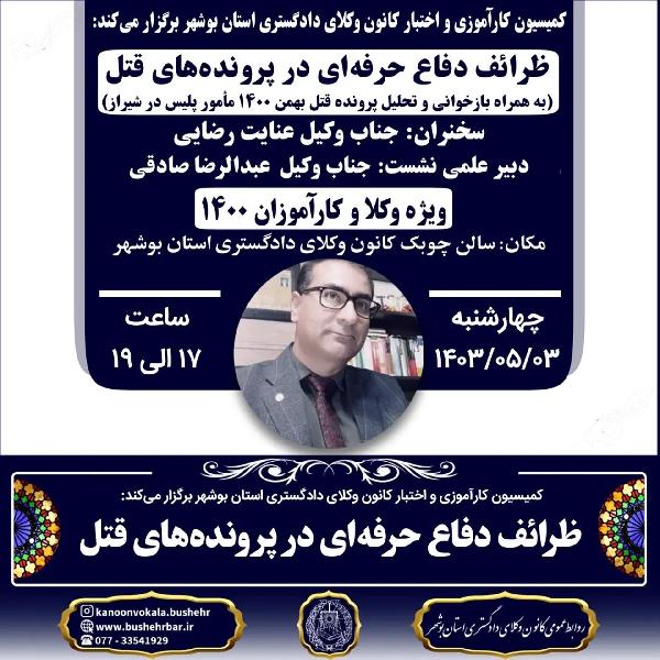 کارگاه آموزشی ظرائف دفاع حرفه ای در پرونده های قتل