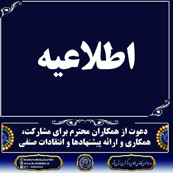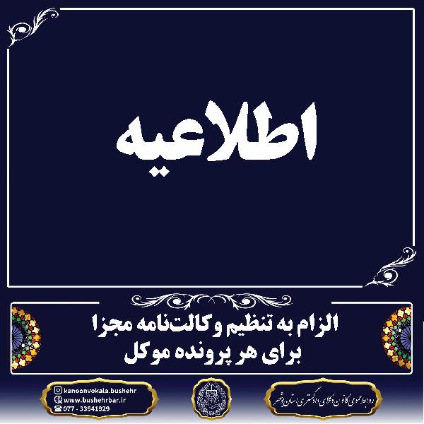 اطلاعیه زمان برگزاری مجمع عمومی کانون وکلای دادگستری استان بوشهر