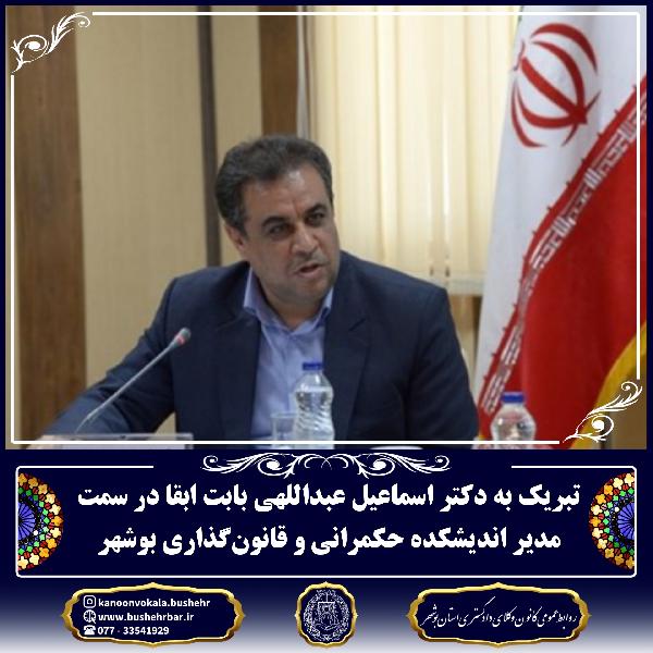 تبریک به دکتر اسماعیل عبداللهی بابت ابقا در سمت مدیر اندیشکده حکمرانی و قانونگذاری بوشهر