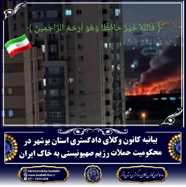 بیانیه کانون وکلای دادگستری استان بوشهر در محکومیت حملات رژیم صهیونیستی به خاک ایران